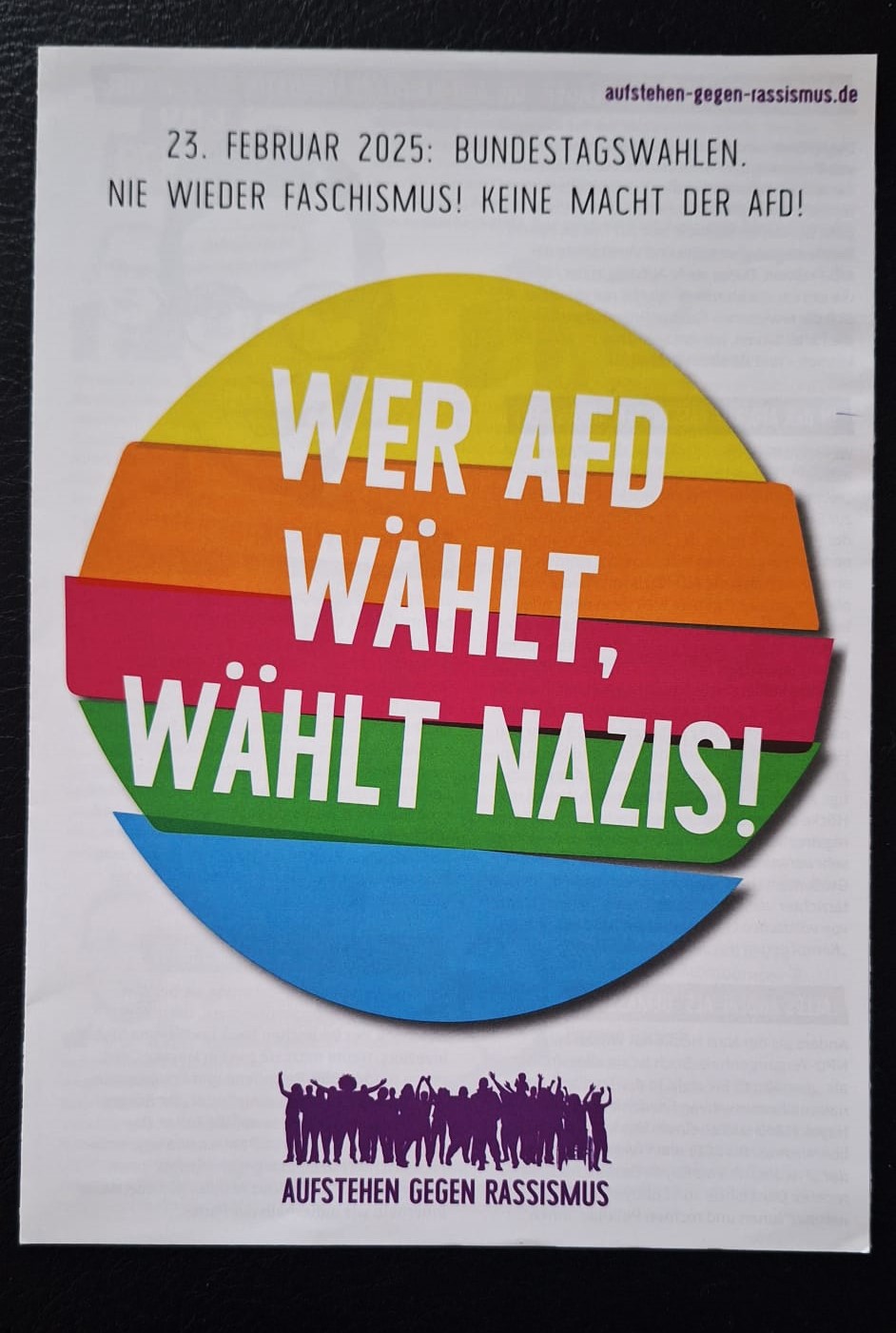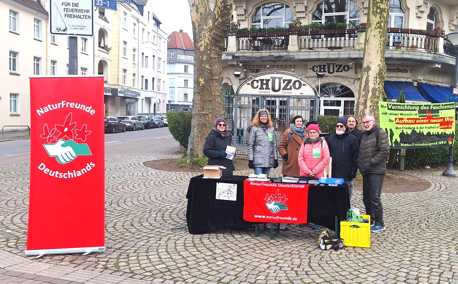 Wer AFD wählt, wählt Nazis! Viele Mitglieder der Naturfreunde Kreuzviertel beim Infostand gegen Rechts auf der Möllerbrücke am 15. und 22. Februar 2025. Organisiert von der AG gegen Rechts!!