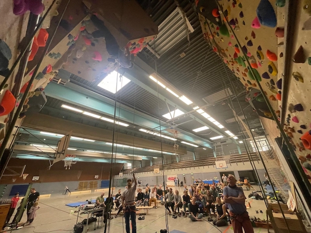 In der Sporthalle Nord I veranstaltete die Ortsgruppe Dortmund-Kreuzviertel am 08.11.25 den jährlichen Klettervergleich. Die Klettergriffe wurden in den vorangegangenen 4 Wochen komplett abgeschraubt und sämtliche Griffe gereinigt. Pünktlich zum Wettkampf hatten fleißige Mitglieder der Ortsgruppe wieder viele neue Herausforderungen in die Wand geschraubt. Es konnte wieder losgehen.
